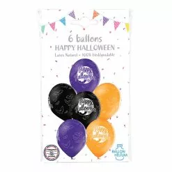 6 Ballons Latex 30 Cm Happy Halloween NOIR ORANGE VIOLET