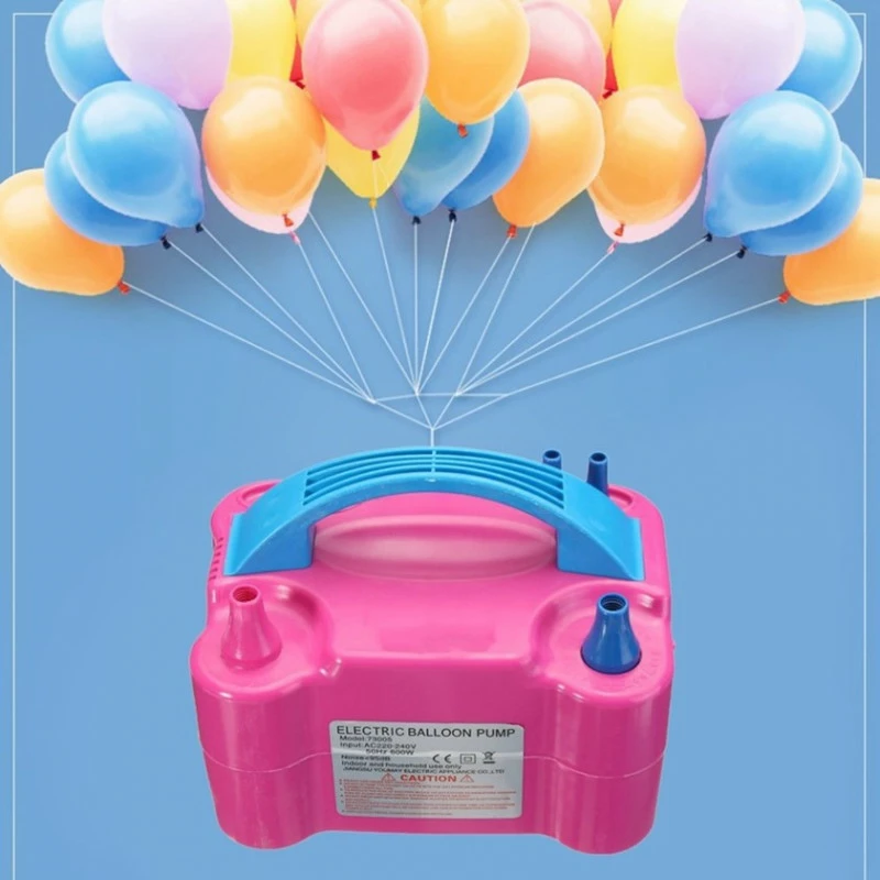 Pompe à air de ballon à Double buses, elle démarre lorsque vous appuyez sur la buse et s’arrête immédiatement lors du relâchement, si un grand nombre de ballons doivent être gonflés, vous pouvez allumer le bouton pour une utilisation continue.
